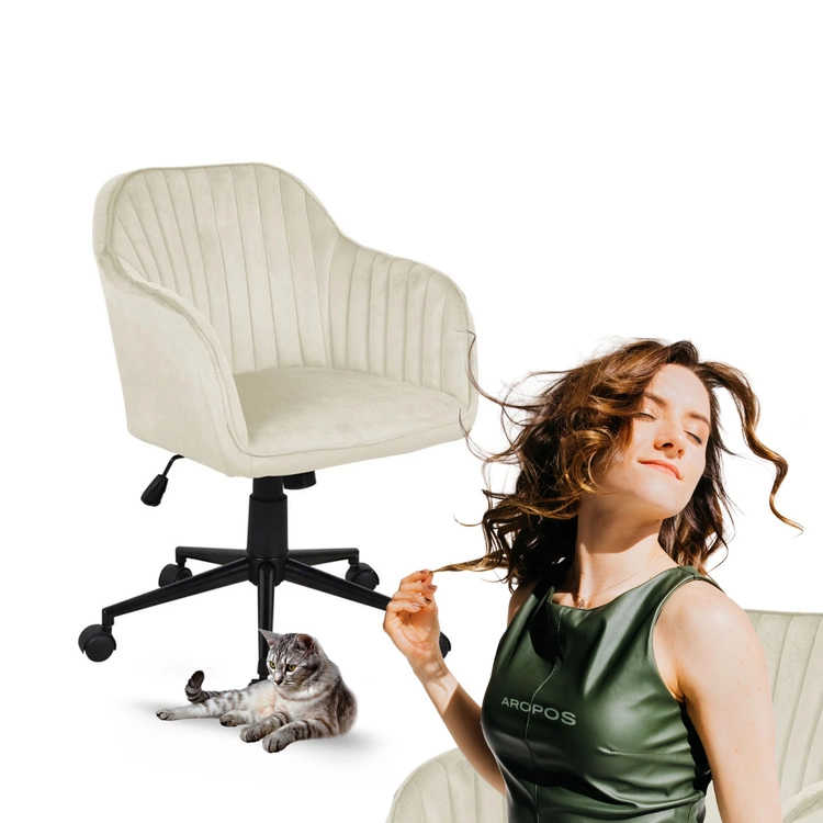 • Designerski fotel EDGAR z miękką welurową tapicerką w kolorze beżowym to połączenie elegancji i komfortu. Regulowana wysokość i solidna, czarna podstawa sprawiają, że doskonale sprawdzi się w biurze lub domowym gabinecie.