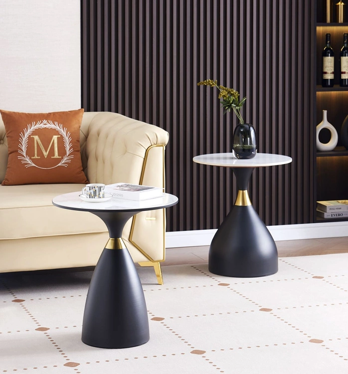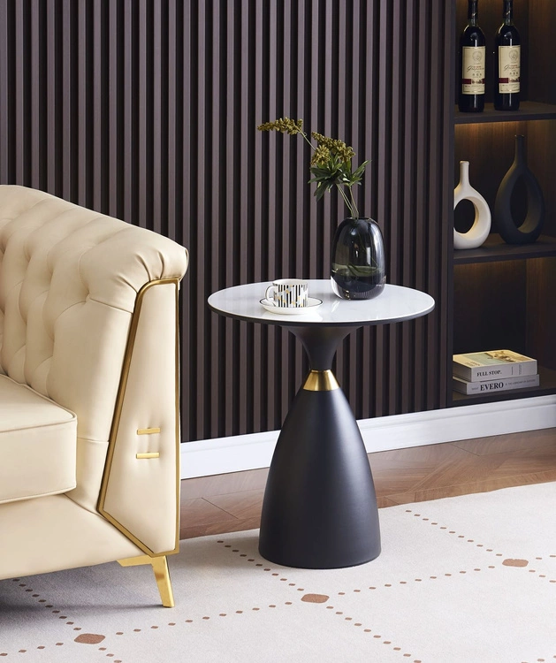 - Stylowa ława VESTA 50 zachwyca marmurowym blatem i czarną podstawą ze złotym akcentem. To elegancki stolik pomocniczy idealny do wnętrz glamour, nowoczesnych lub art déco – kompaktowy, praktyczny i dekoracyjny zarazem.