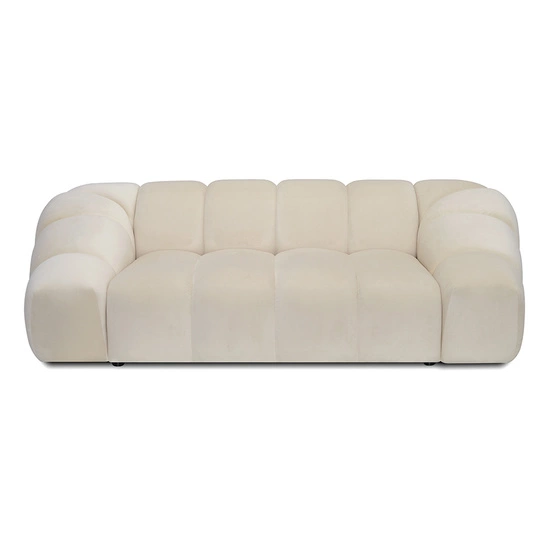 Mebel zachwyca swoim niebanalnym kształtem, który przywodzi na myśl miękkie, organiczne linie. Głębokie pikowanie nadaje całości wyrazistej faktury i podkreśla prestiżowy charakter sofy. Niskie, szerokie oparcie oraz boczne podłokietniki zapewniają wygodę zarówno podczas siedzenia, jak i leżenia.