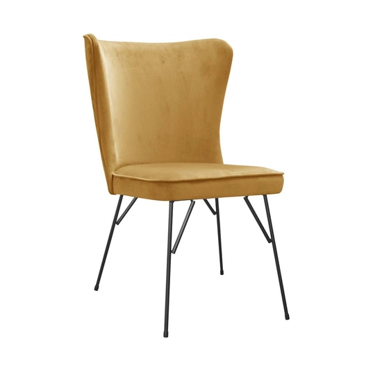 Głębokie i miękkie siedzisko gwarantuje wygodę nawet przy dłuższym użytkowaniu, a designerski, metalowy stelaż w czarnym kolorze nadaje całości elegancji i nowoczesności. To model, który idealnie wkomponuje się zarówno w przestrzenie prywatne, jak i komercyjne – od salonów i jadalni po poczekalnie, kawiarnie i hotele.