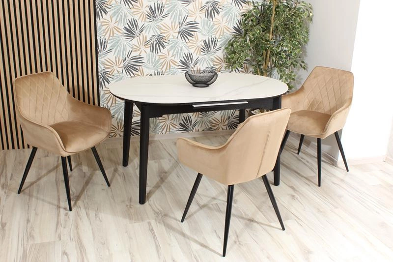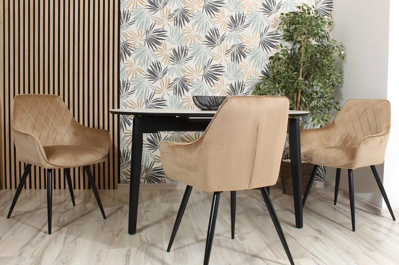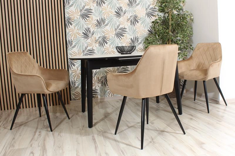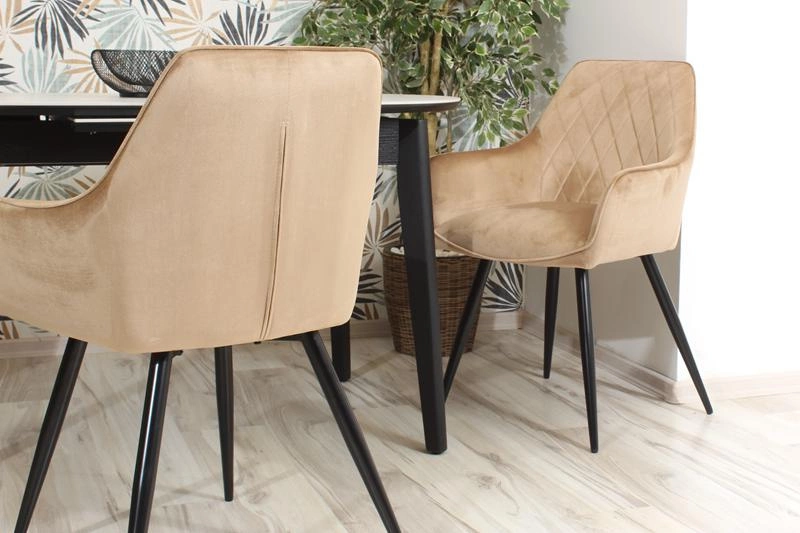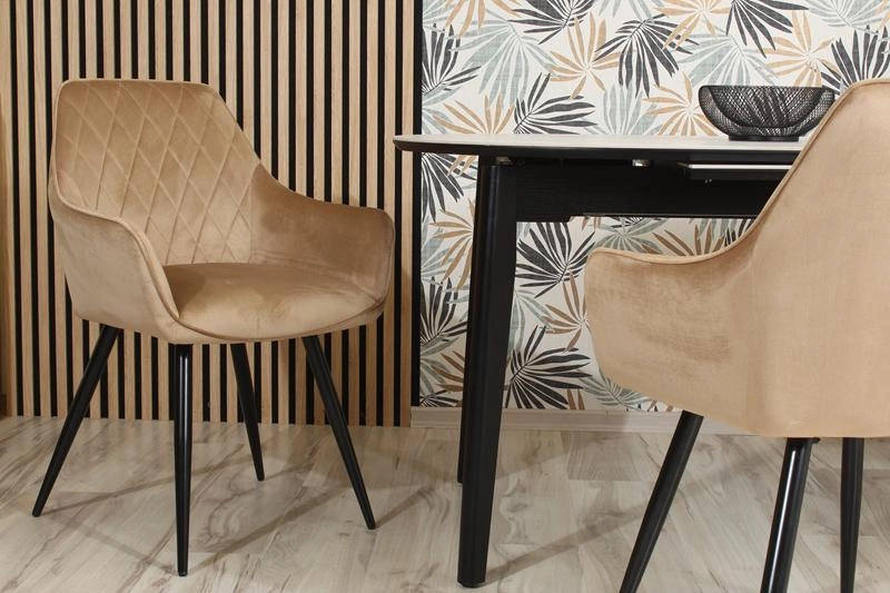 Tapicerowane krzesło CARBO w kolorze ciemny beż | czarne nogi