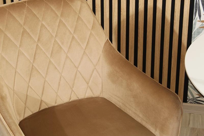 Model CARBO wyróżnia się wyrazistą formą oraz charakterystycznymi przeszyciami na oparciu, które nadają mu unikalnego wyglądu. Stonowana kolorystyka sprawia, że krzesło idealnie wpasowuje się w przestrzeń, dodając jej elegancji i nowoczesnego charakteru.