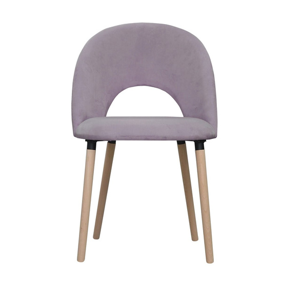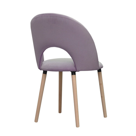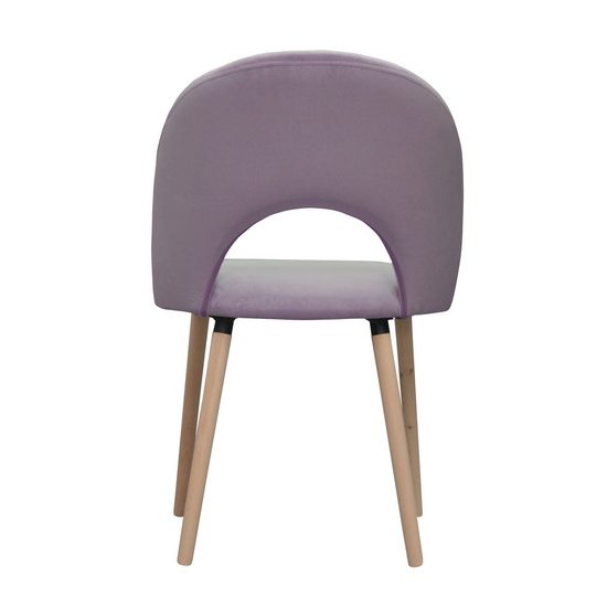 Krzesło wyróżnia się minimalistycznym designem – proste linie, brak zbędnych ozdób i elegancka forma wpisują się w aktualne trendy wnętrzarskie. Otwór w oparciu dodaje mu wizualnej lekkości, a także wpływa korzystnie na cyrkulację powietrza podczas siedzenia. Konstrukcja oparta na litego drewna bukowego oraz mocowaniu nóg w kolorze czarnym gwarantuje trwałość i odporność na intensywne użytkowanie.