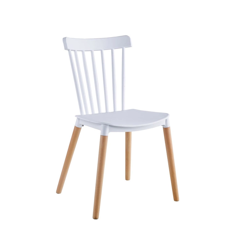 Białe krzesło z tworzywa AVENA z drewnianymi nogami