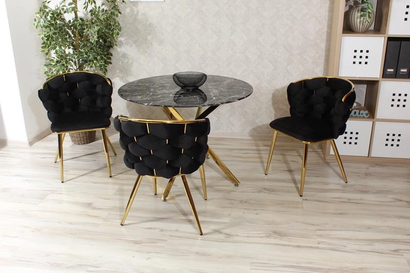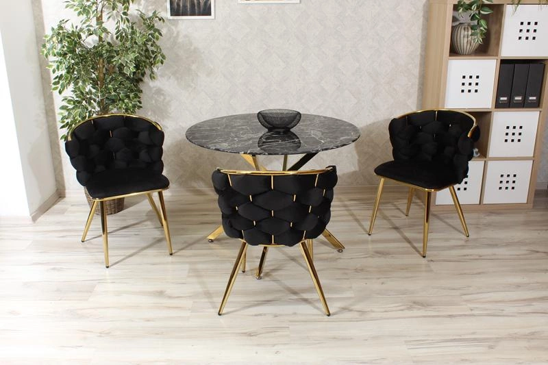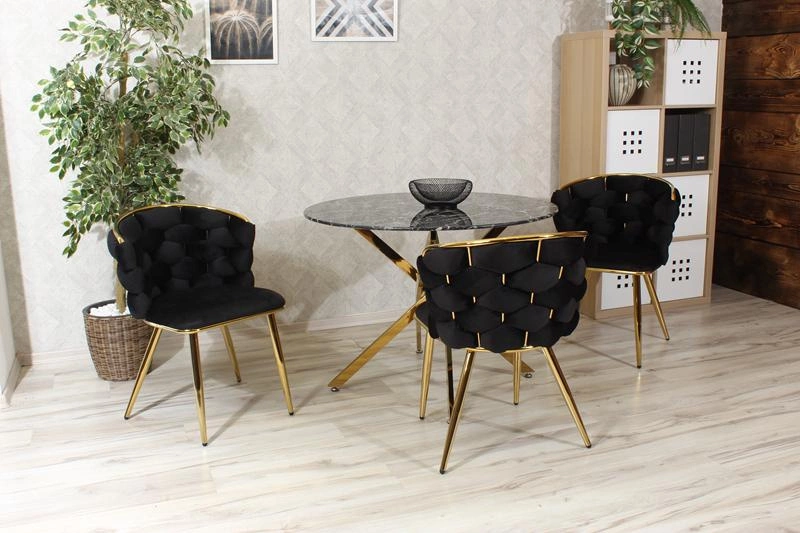 Krzesło ze splotem na oparciu MIRELLA GOLD w czarnym kolorze
