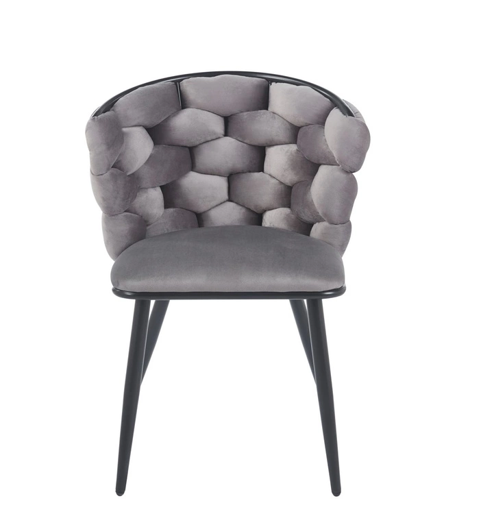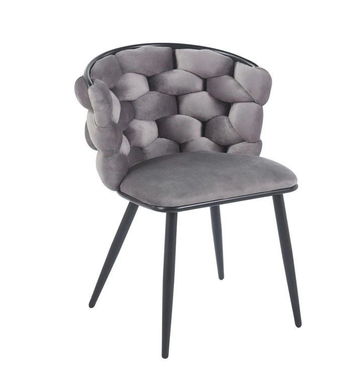 • Szare krzesło MIRELLA z welwetową tapicerką i czarnym stelażem to połączenie elegancji, komfortu i nowoczesnego stylu – idealne do salonu, jadalni czy biura.