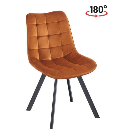 - Krzesło TRIBAL SPIN w cynamonowym welurze z obrotowym siedziskiem 180° i funkcją powrotu to stylowe i praktyczne rozwiązanie do nowoczesnych i eleganckich wnętrz.
