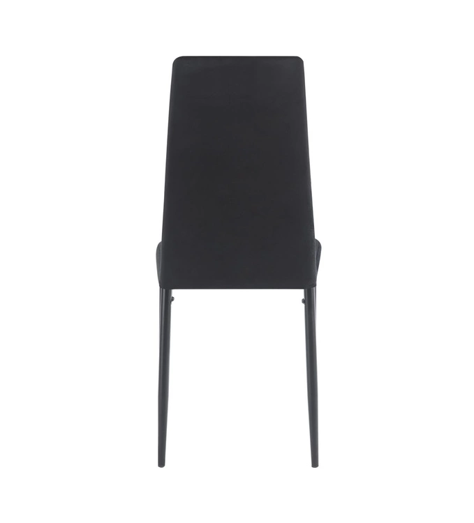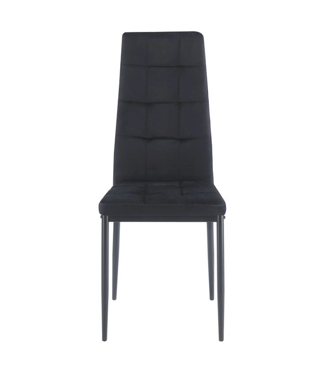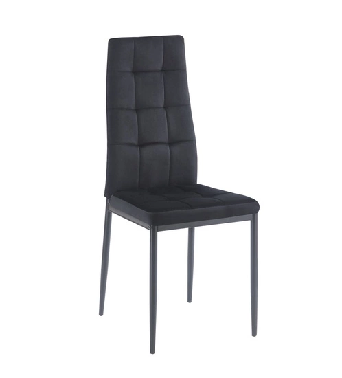 - Krzesło LIVANO w czarnym welwecie to połączenie elegancji i komfortu. Wysokie oparcie, miękka tkanina velvet oraz czarne metalowe nogi tworzą stylową całość do jadalni, salonu lub gabinetu.