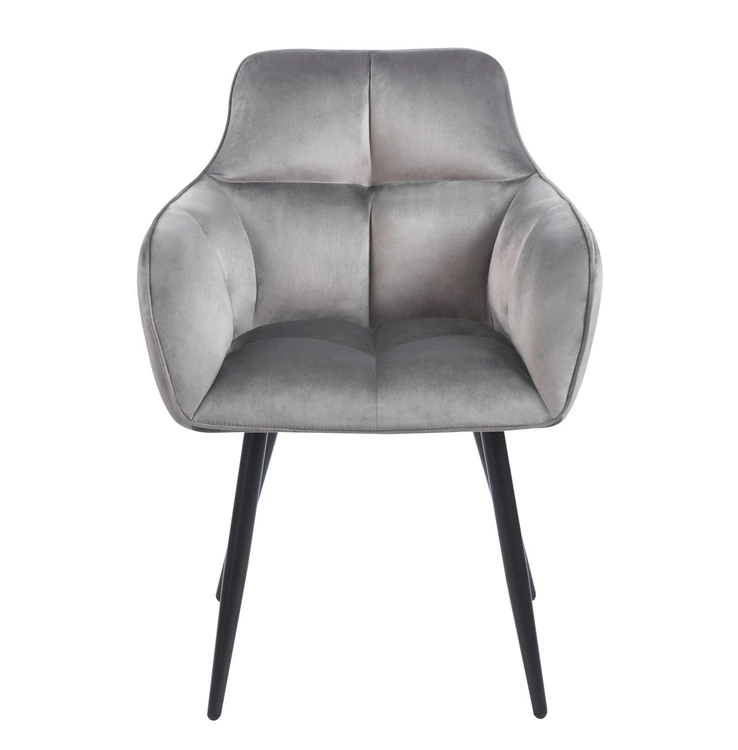 LORIVA to krzesło stworzone z myślą o wygodzie i estetyce. Szara welurowa tapicerka nadaje mu subtelnej elegancji, jednocześnie wprowadzając do wnętrza przytulną atmosferę. Dzięki lekko profilowanemu oparciu oraz szerokiemu siedzisku użytkownik zyskuje wysoki komfort siedzenia, co sprawia, że mebel świetnie sprawdzi się zarówno w jadalni, jak i w salonie czy gabinecie. Czarny metalowy stelaż malowany proszkowo zapewnia stabilność i wytrzymałość na lata. Krzesło LORIVA to doskonałe połączenie stylu glamour i nowoczesnego minimalizmu.