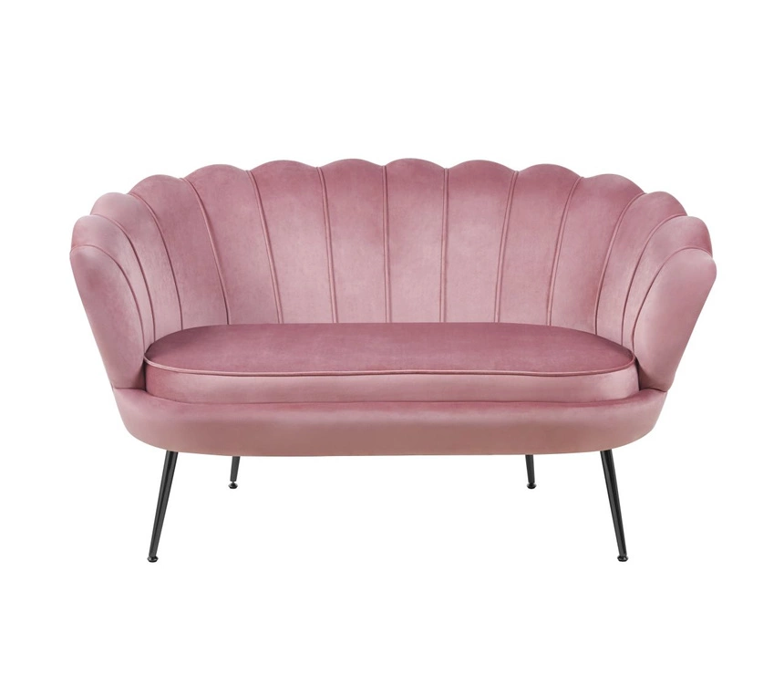 Sofa VIDAL w różowym welurze na czarnych nóżkach