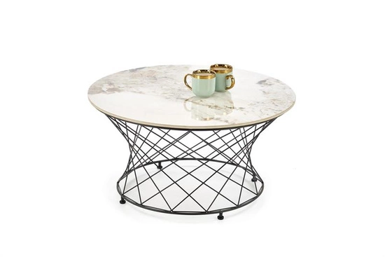 • Ława ALESSIA to połączenie eleganckiego blatu ze spieku w kolorze beżowego marmuru z nowoczesną podstawą z czarnej stali. Stylowy design sprawia, że doskonale wpisze się w wystrój salonu w duchu glamour i nowoczesnym.