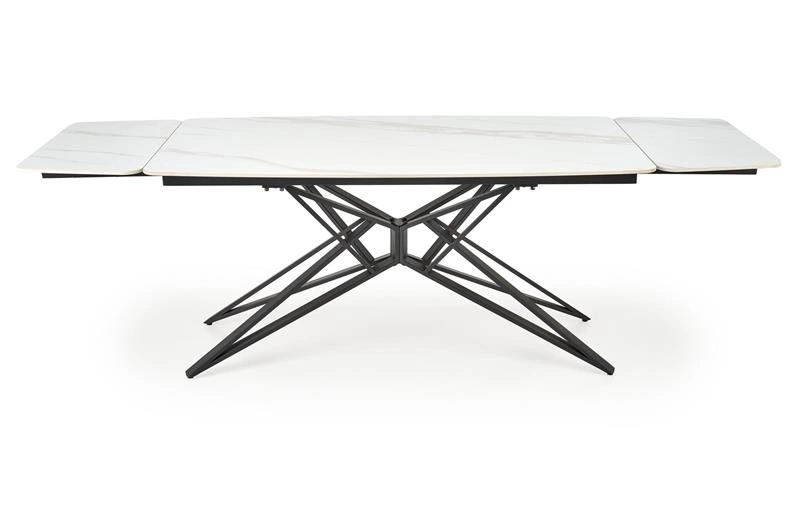 Stół rozkładany z marmurowym blatem ALFREDO biały na czarnym stelażu