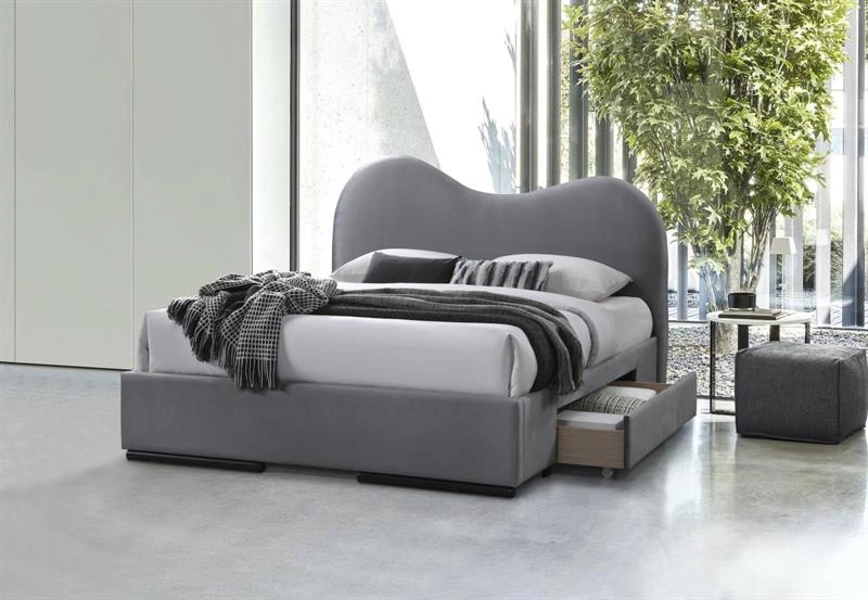 Łóżko AMBER 160 z szufladami w popielatym kolorze z tkaniny velvet