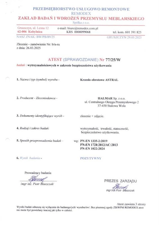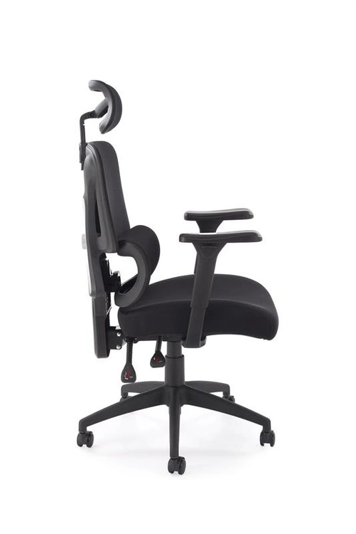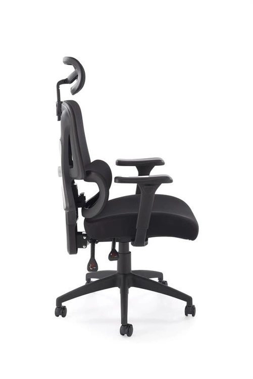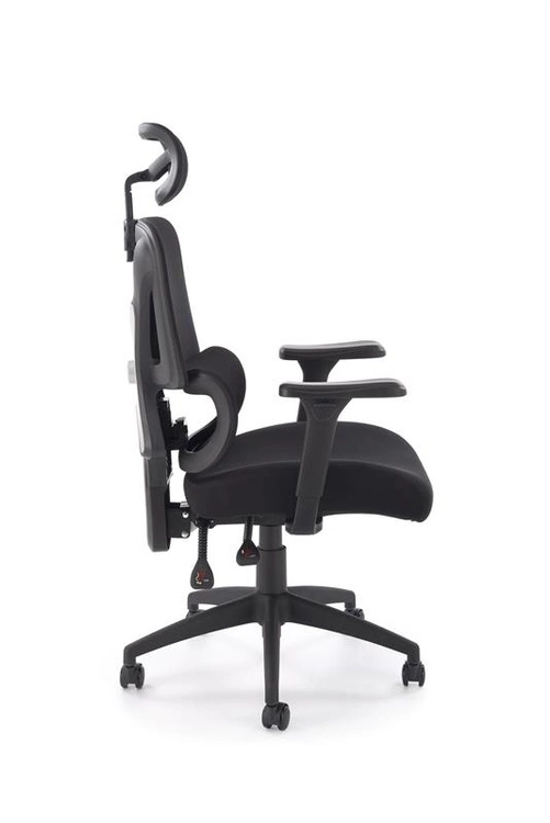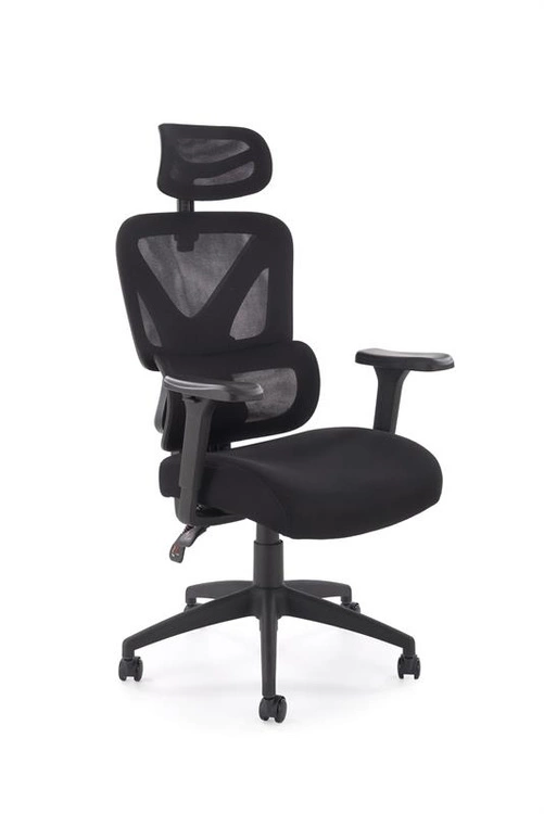 Fotel gabinetowy ASTRAL to połączenie funkcjonalności i elegancji, stworzone z myślą o komforcie codziennej pracy. Wyposażony w nowoczesny mechanizm MULTIBLOCK, pozwala na blokowanie oparcia w kilku pozycjach i dopasowanie kąta nachylenia do indywidualnych potrzeb. Regulowane podłokietniki, zagłówek oraz punkt podparcia pleców dbają o ergonomiczne ustawienie ciała, wspierając kręgosłup i zmniejszając zmęczenie. Siatkowe oparcie gwarantuje doskonałą wentylację, co sprawdza się szczególnie podczas długich godzin pracy. Solidna konstrukcja i elegancki, czarny kolor sprawiają, że ASTRAL to idealny wybór do nowoczesnych biur, gabinetów czy domowych stanowisk pracy.