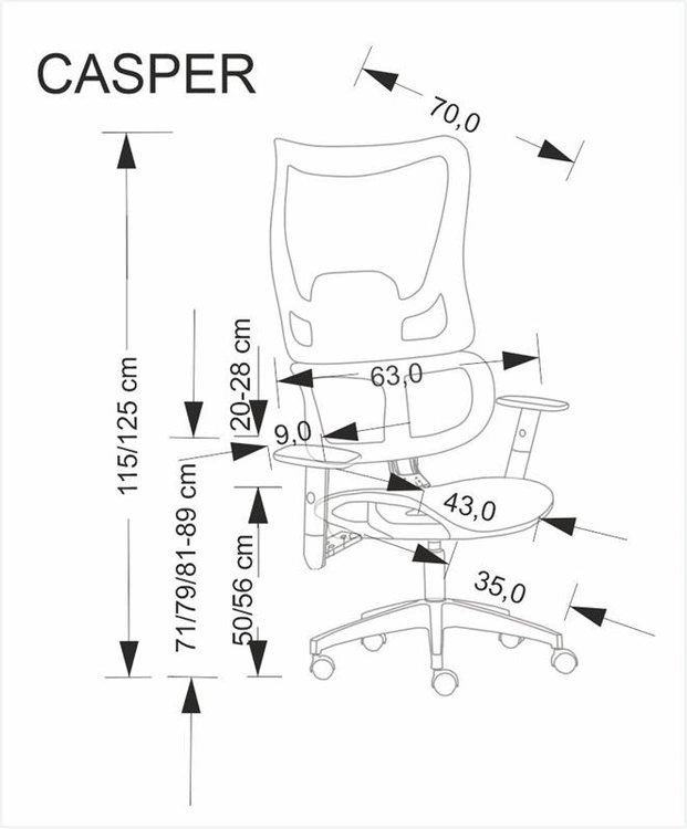 CASPER to nowoczesny fotel gabinetowy zaprojektowany z myślą o komforcie i zdrowej postawie w trakcie pracy. Dzięki mechanizmowi synchronicznemu umożliwia płynne odchylanie i dopasowanie kąta nachylenia siedziska do oparcia. Regulowane podłokietniki, wysokość oparcia, punkt podparcia pleców oraz siedzisko pozwalają na pełne dopasowanie fotela do indywidualnych potrzeb użytkownika. Wykonany z przewiewnej siatki, zapewnia doskonałą cyrkulację powietrza, co zwiększa wygodę nawet podczas wielogodzinnego siedzenia. CASPER to idealny wybór do biura, gabinetu czy domowego stanowiska pracy, łączący ergonomię z nowoczesnym designem.