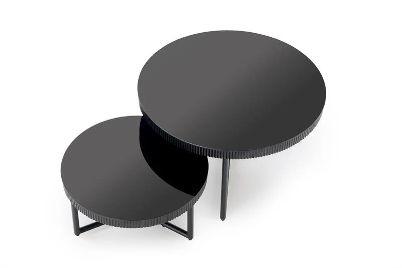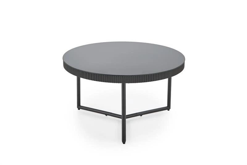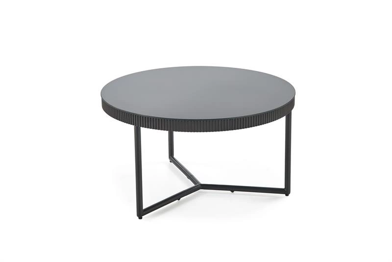 • Ława COSMO w kolorze czarnym to stylowy stolik o średnicy 80 cm, wykonany ze szkła, MDF lakierowanego i stali malowanej proszkowo. Doskonały do salonu, łączący nowoczesną formę z elegancją.