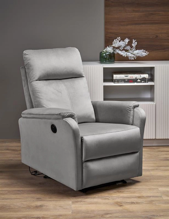 Fotel wypoczynkowy CROCUS popielaty z funkcją elektrycznego rozkładania
