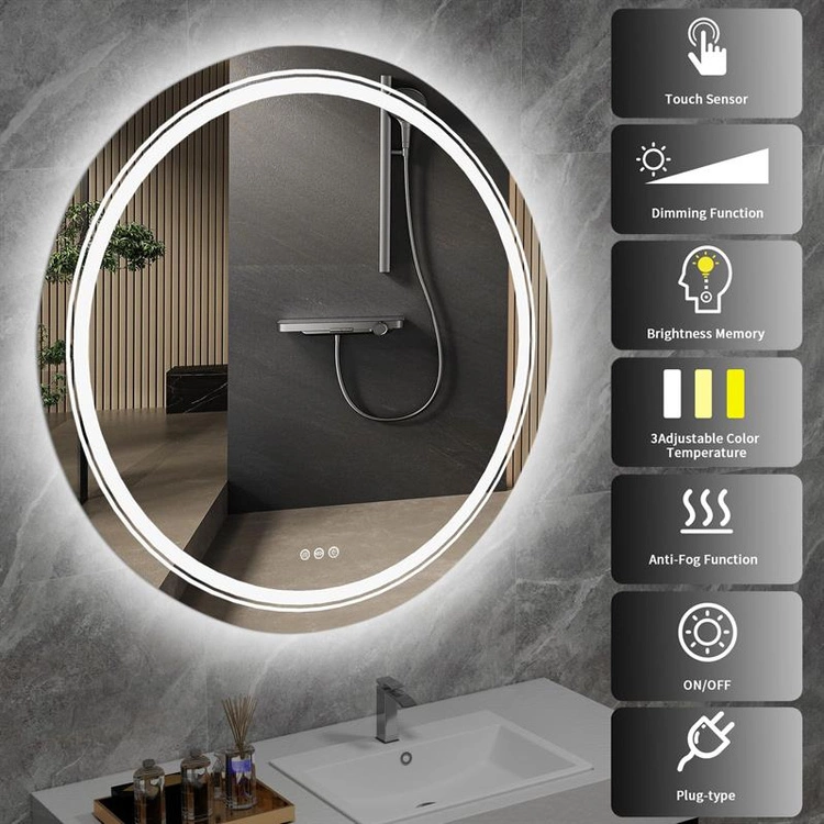 Lustro łazienkowe DOVER 60 w kolorze srebrnym z podświetleniem LED