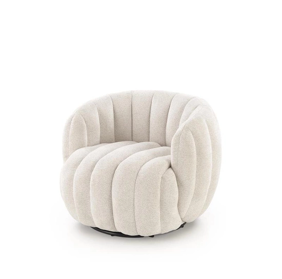- Fotel wypoczynkowy FRASER w kolorze kremowym łączy elegancję i wygodę, oferując funkcję obracania. Wykonany z miękkiej tkaniny RAVEN i osadzony na solidnej, stalowej podstawie, doskonale sprawdzi się w nowoczesnych aranżacjach.