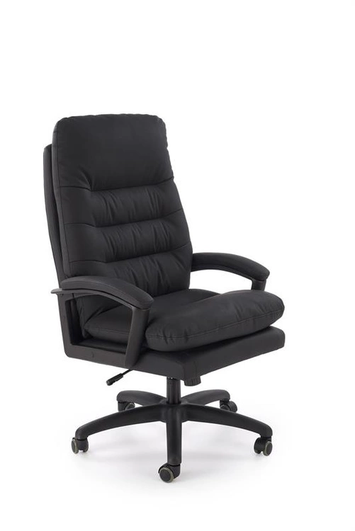 - Fotel gabinetowy HARBOR w czarnej eco skórze to elegancki i funkcjonalny model z mechanizmem TILT. Zapewnia wygodę i stabilność, idealny do biura lub domowego gabinetu, łącząc klasyczny wygląd z ergonomiczną konstrukcją.
