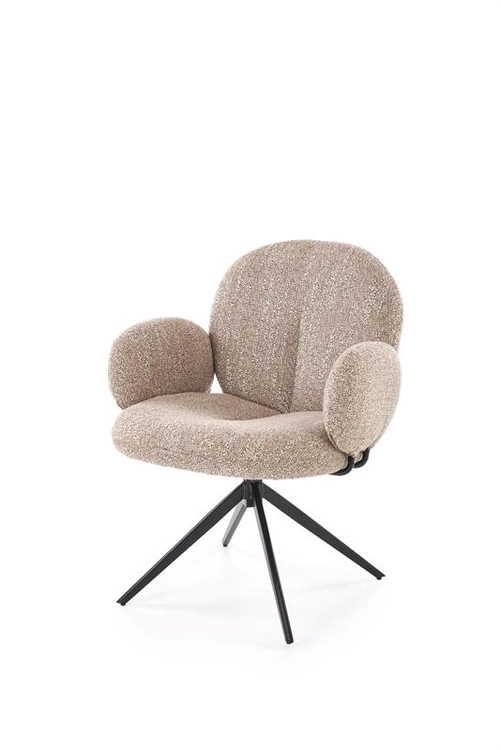 - Krzesło K568 w kolorze ciemny beżowy to elegancki model z funkcją obracania, łączący wygodę i nowoczesny design. Tapicerowane miękką tkaniną, osadzone na stabilnej stalowej podstawie, doskonałe do jadalni, salonu lub biura.