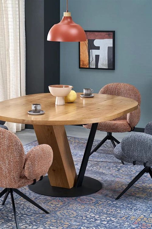 - Krzesło K568 w kolorze cynamonowym to nowoczesny model z funkcją obracania, który łączy wygodę i elegancję. Tapicerowane miękką tkaniną i osadzone na solidnej stalowej podstawie, idealnie sprawdzi się w jadalni, salonie lub gabinecie.