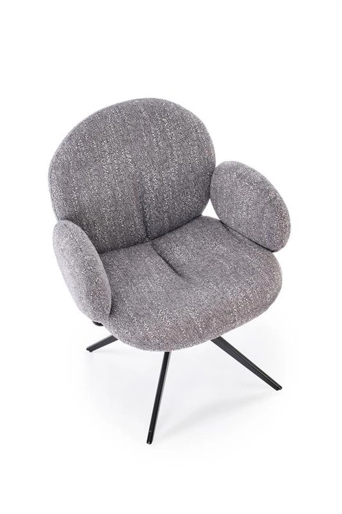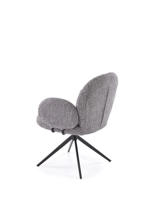 - Krzesło K568 w popielatym kolorze to nowoczesny model z funkcją obracania. Tapicerowane miękką tkaniną i osadzone na solidnej, stalowej podstawie, łączy wygodę i styl, idealne do jadalni, salonu czy domowego gabinetu.