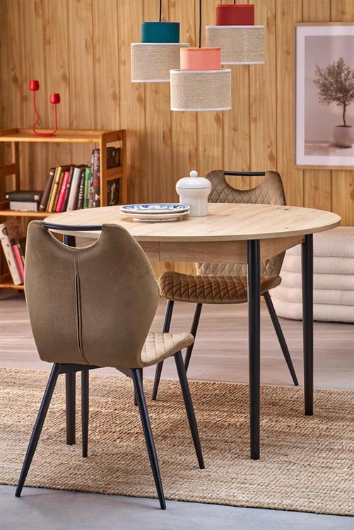 Krzesło K569 łączy komfort i elegancki wygląd w lekkiej, nowoczesnej formie. Tapicerka z tkaniny velvet HLR w beżowym odcieniu #11 jest przyjemna w dotyku, trwała i odporna na codzienne użytkowanie, a jej stonowana barwa dodaje wnętrzu ciepła. Stabilna podstawa z malowanej proszkowo stali gwarantuje solidność i wytrzymałość, jednocześnie zachowując smukły, designerski kształt. Ergonomicznie wyprofilowane oparcie i wygodne siedzisko zapewniają wysoki komfort siedzenia. Beżowa wersja krzesła K569 doskonale odnajdzie się w aranżacjach nowoczesnych, skandynawskich i glamour, wprowadzając do przestrzeni subtelną elegancję.