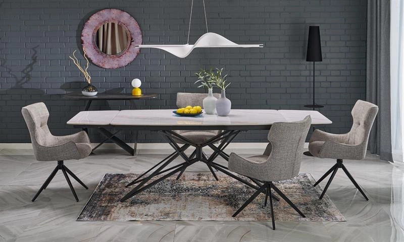 - Krzesło K573 w beżowym kolorze to nowoczesny model z obrotowym siedziskiem, łączący wygodę i styl. Tapicerowane miękką tkaniną i osadzone na stalowej podstawie, sprawdzi się w jadalni, salonie lub eleganckim gabinecie.