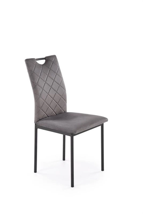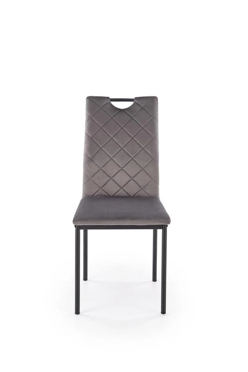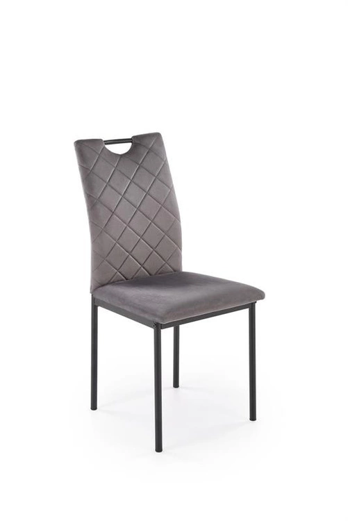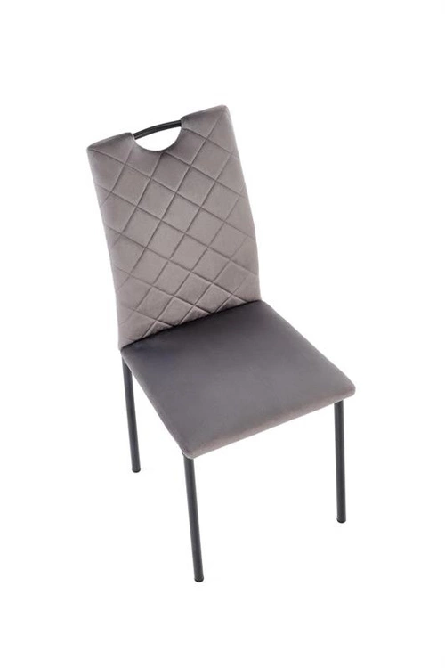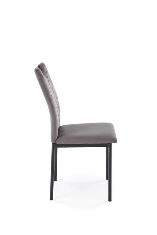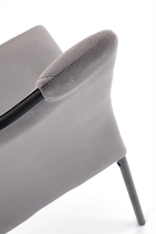 - Krzesło K577 w popielatym kolorze to elegancka propozycja do jadalni lub salonu. Tapicerowane miękkim welwetem HLR i wsparte na czarnej stalowej podstawie, łączy wygodę siedzenia z nowoczesnym stylem.