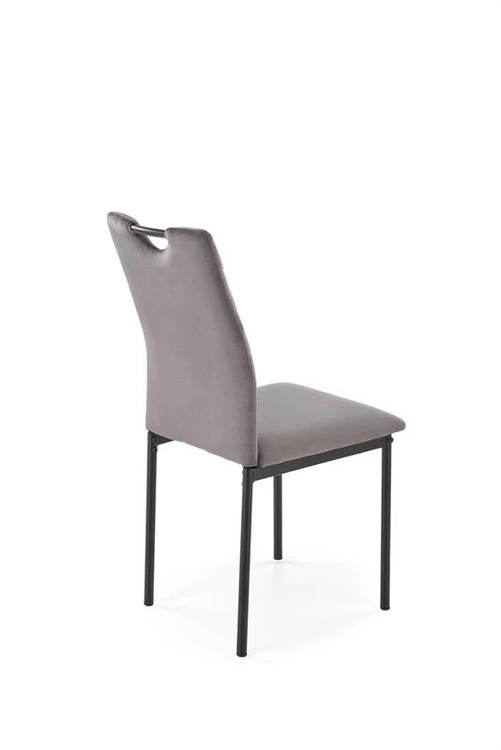 Krzesło K577 to stylowy mebel, który wyróżnia się elegancją i komfortem. Tapicerka z tkaniny velvet HLR w popielatym odcieniu #21 jest przyjemna w dotyku, odporna na codzienne użytkowanie i subtelnie połyskująca, co nadaje wnętrzu luksusowego charakteru. Stabilne nogi wykonane ze stali malowanej proszkowo w czarnym kolorze zapewniają trwałość i nowoczesny wygląd. Ergonomiczne oparcie i wygodne siedzisko gwarantują komfort nawet podczas długiego użytkowania. K577 doskonale sprawdzi się w jadalni, salonie lub eleganckich przestrzeniach komercyjnych.