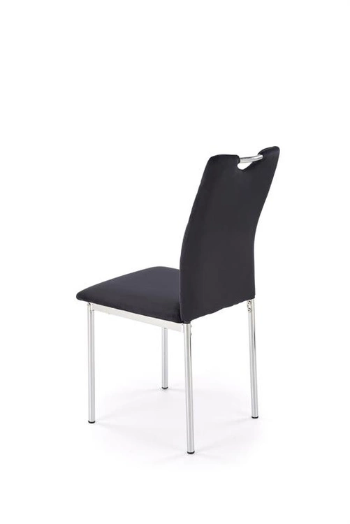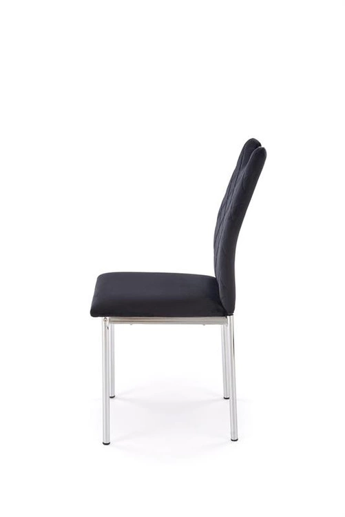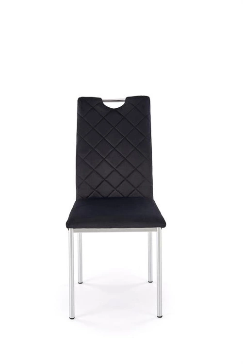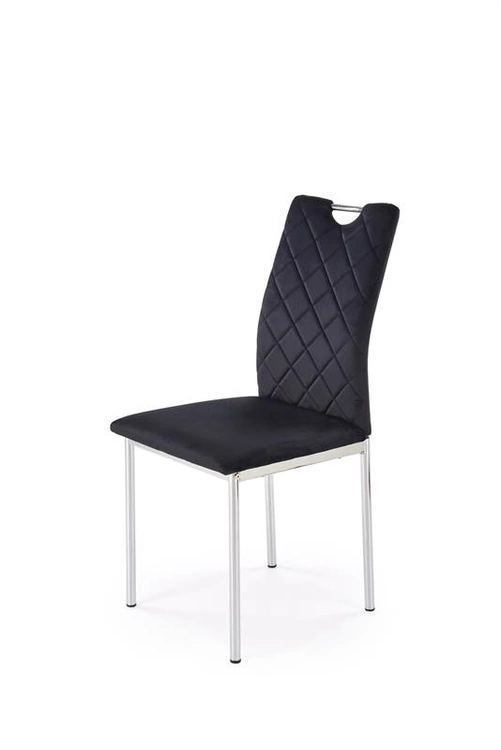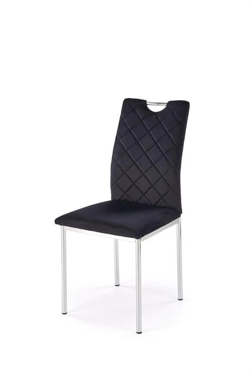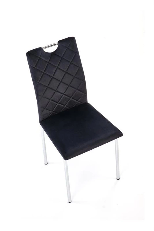 - Krzesło K578 w czarnym kolorze to elegancki model, który łączy komfort i nowoczesny styl. Tapicerowane miękkim welwetem HLR i wsparte na srebrnych, chromowanych nogach, doskonale sprawdzi się w jadalni, salonie lub biurze.