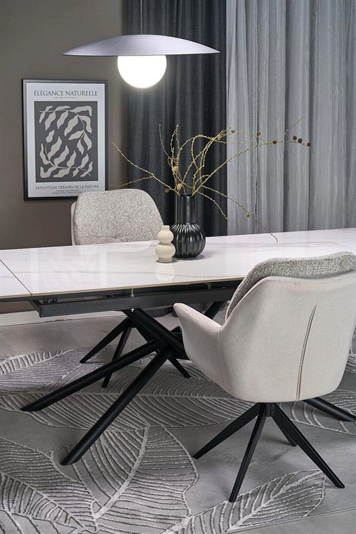 - Krzesło K591 w jasnym popielu łączy nowoczesny styl z komfortem. Tapicerowane miękką tkaniną, posiada funkcję obracania i stabilną stalową podstawę, dzięki czemu świetnie sprawdzi się w jadalni, salonie lub gabinecie.