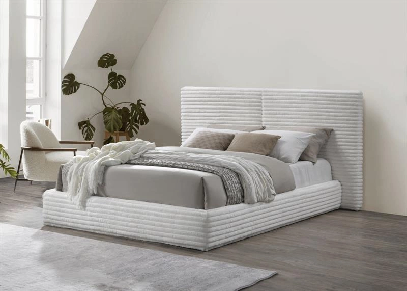 Łóżko MADERA 160 to propozycja dla osób ceniących harmonijny design i komfort snu. Obite miękką tkaniną w kremowym odcieniu, wprowadza do wnętrza ciepło i elegancję. Stabilna konstrukcja zapewnia trwałość, a wysokie wezgłowie pozwala na wygodne oparcie podczas czytania lub oglądania telewizji. Model sprzedawany jest bez materaca, jednak dostępne są dedykowane opcje – POLARIS 160 lub SYRIUSZ 160 – które idealnie dopasują się do ramy i zapewnią optymalne podparcie. MADERA to łóżko, które będzie centralnym punktem każdej sypialni, łącząc funkcjonalność z estetyką.