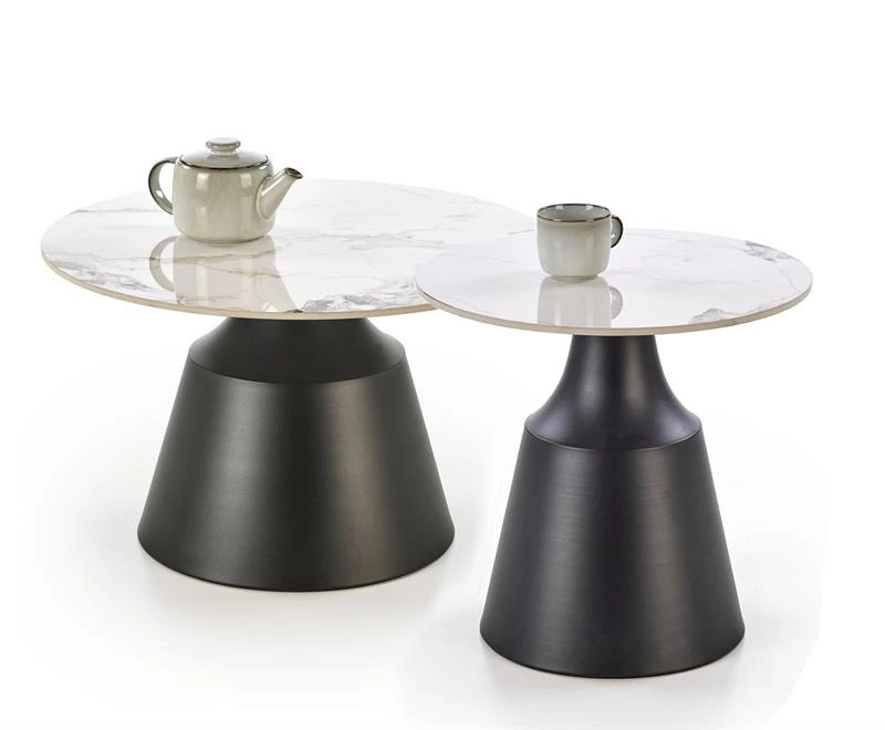 • Zestaw dwóch ław MAGNETA w wykończeniu biały marmur/czarny to eleganckie i nowoczesne rozwiązanie do salonu. Blaty ze spieku oraz czarna stalowa podstawa tworzą trwały i stylowy komplet.
