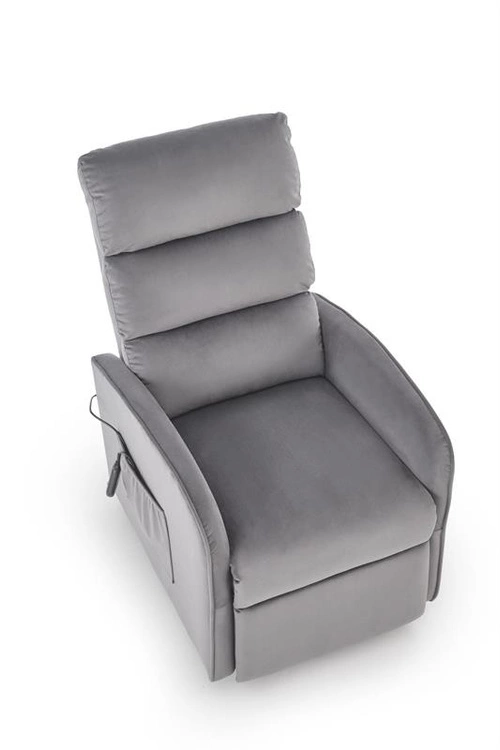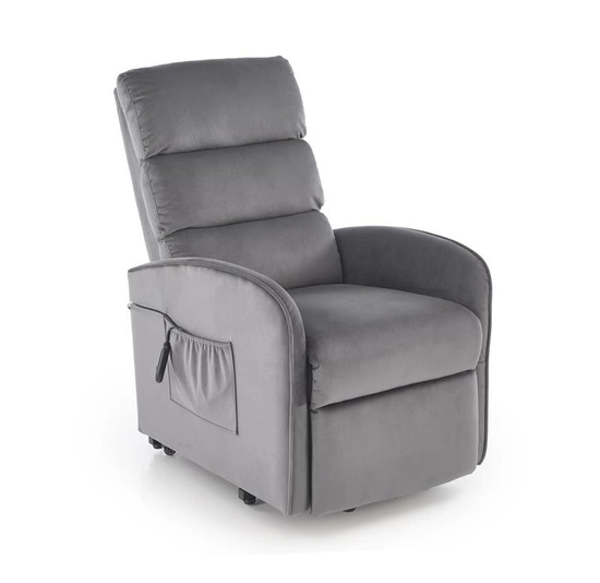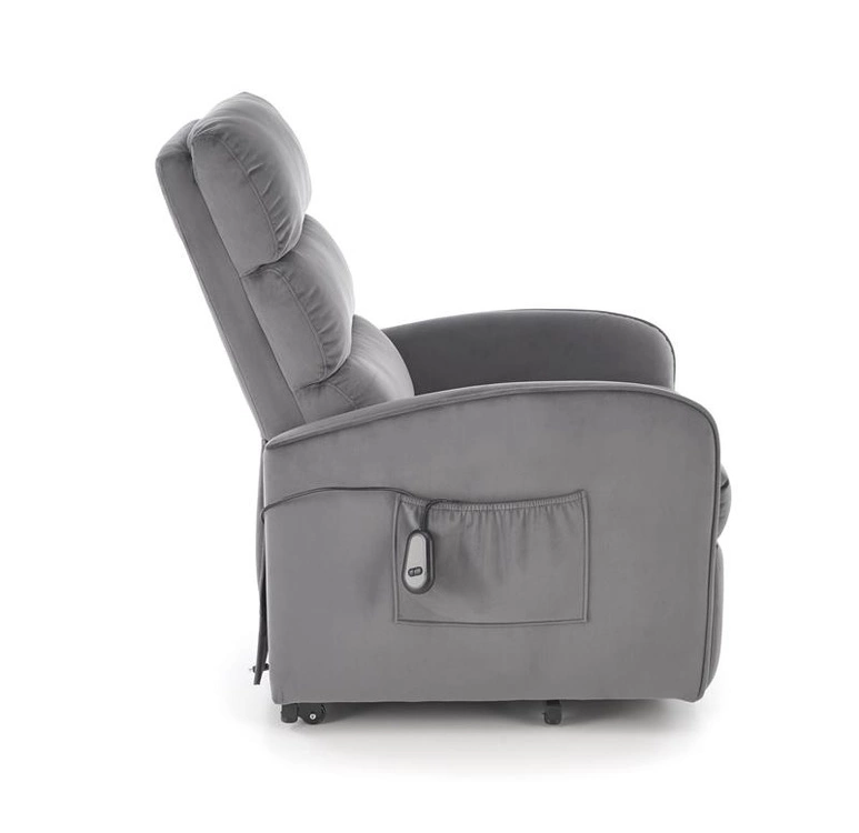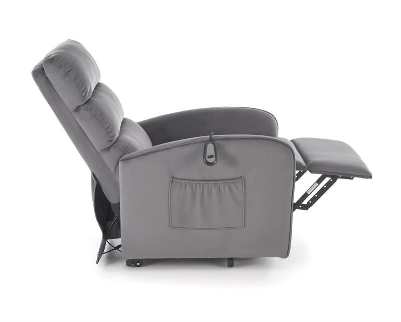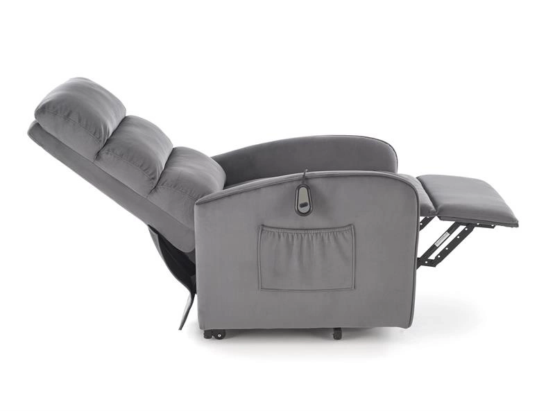 • Fotel MARONI w popielatym kolorze to elegancja i wygoda w jednym. Tapicerowany miękkim velvetem BLUVEL, posiada funkcję elektrycznego rozkładania i pionizacji, zapewniając maksymalny komfort i wsparcie podczas wstawania.