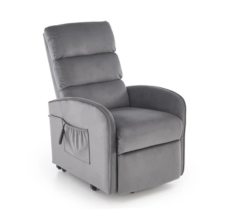 Fotel wypoczynkowy MARONI to propozycja dla osób, które cenią sobie komfort i nowoczesne rozwiązania. Tapicerowany przyjemną w dotyku tkaniną velvet BLUVEL w odcieniu popielatym #14, nadaje wnętrzu eleganckiego charakteru i przytulności. Wyposażony w funkcję elektrycznego rozkładania pozwala na płynną zmianę pozycji z siedzącej na leżącą, co sprzyja relaksowi. Dodatkowa funkcja pionizacji wspiera bezpieczne i wygodne wstawanie, co czyni fotel doskonałym wyborem również dla osób starszych lub o ograniczonej mobilności. Stabilna konstrukcja zapewnia trwałość, a nowoczesny design pozwala na dopasowanie fotela do różnych aranżacji wnętrz.