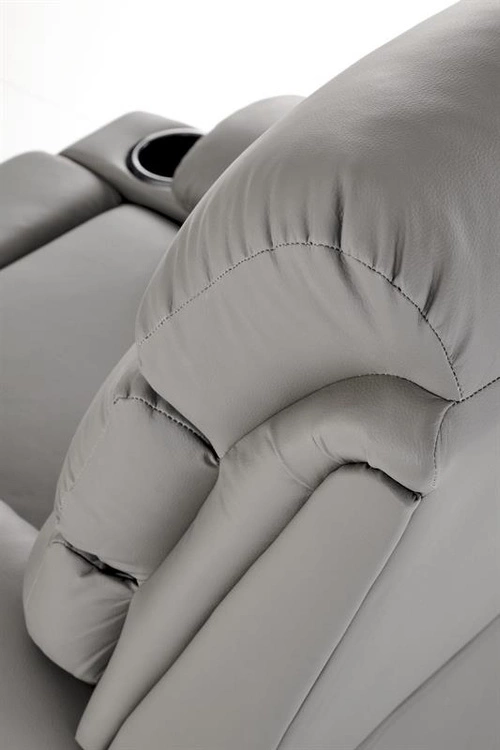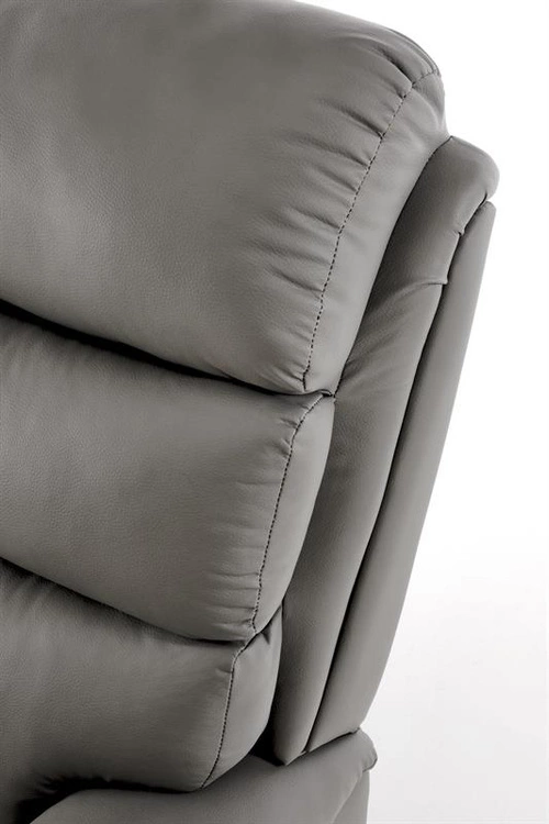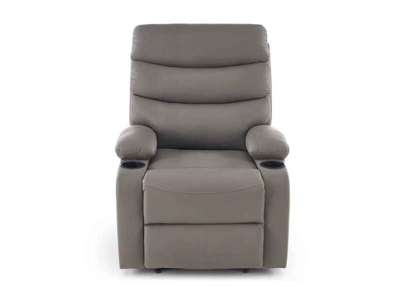 Fotel PERUS w eleganckim, popielatym odcieniu to propozycja dla osób ceniących wygodę i funkcjonalność. Wykonany z wytrzymałej eco skóry, jest łatwy w pielęgnacji i odporny na codzienne użytkowanie. Model ten posiada funkcję rozkładania, która pozwala dostosować pozycję siedzenia lub leżenia do indywidualnych potrzeb, zapewniając optymalny komfort. Praktyczne uchwyty na napoje umieszczone w podłokietnikach sprawiają, że fotel doskonale sprawdzi się w salonie, pokoju multimedialnym czy domowej strefie rozrywki. PERUS łączy w sobie nowoczesny design z wygodą, tworząc idealne miejsce do relaksu.