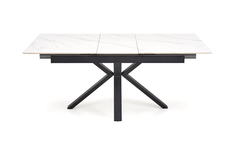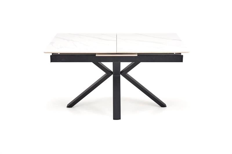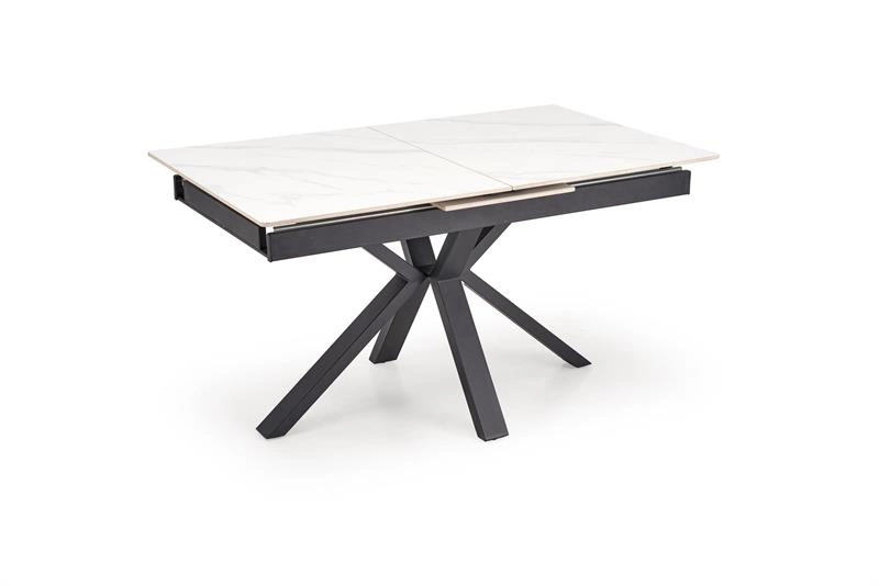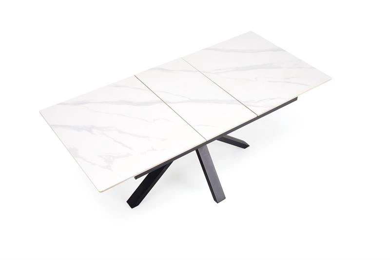 Elegancki stół rozkładany PLATAN z blatem z białego marmuru i czarnymi, stalowymi nogami