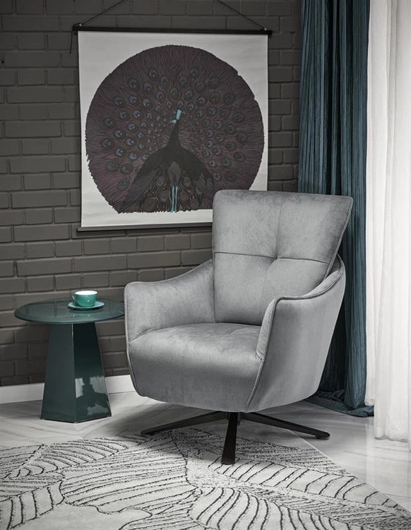 - Fotel SCAMPI w popielatej tkaninie HAVANA #10 to połączenie elegancji i wygody. Wyposażony w funkcję obracania, stabilną metalową podstawę oraz miękką tapicerkę, zapewnia komfort i styl w nowoczesnym wnętrzu.