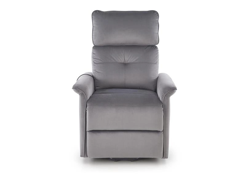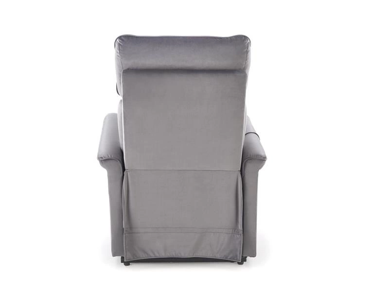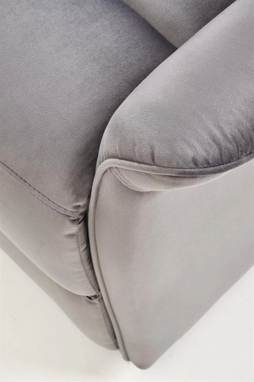 SEMIR 2 to wielofunkcyjny fotel wypoczynkowy, który łączy nowoczesny design z wyjątkową wygodą użytkowania. Tapicerowany miękką, aksamitną tkaniną velvet BLUVEL w eleganckim popielatym odcieniu #14, zachwyca estetyką i przyjemnym w dotyku wykończeniem. Wyposażony w elektryczny mechanizm rozkładania, pozwala płynnie przejść z pozycji siedzącej do leżącej, a funkcja pionizacji ułatwia wstawanie osobom starszym lub o ograniczonej mobilności. Dodatkowy komfort zapewnia funkcja masażu, która pozwala zrelaksować zmęczone mięśnie, a wbudowane gniazdo USB umożliwia ładowanie urządzeń mobilnych. SEMIR 2 to idealny wybór do salonu lub kącika relaksu, łączący nowoczesną technologię z wygodą codziennego użytkowania.