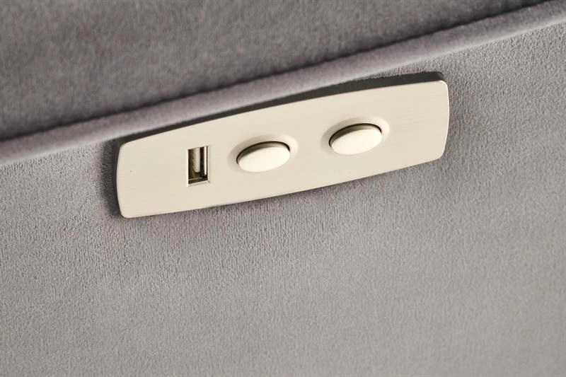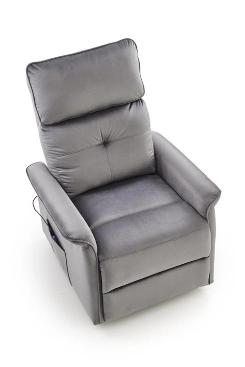 Fotel wypoczynkowy z funkcją elektrycznego rozkładania i gniazdem USB SEMIR 2 w popielatej tkaninie BLUVEL 14