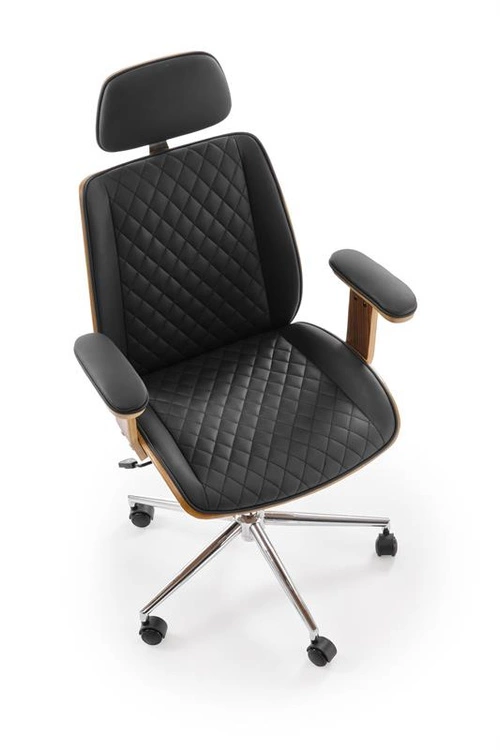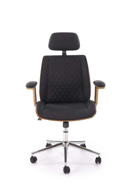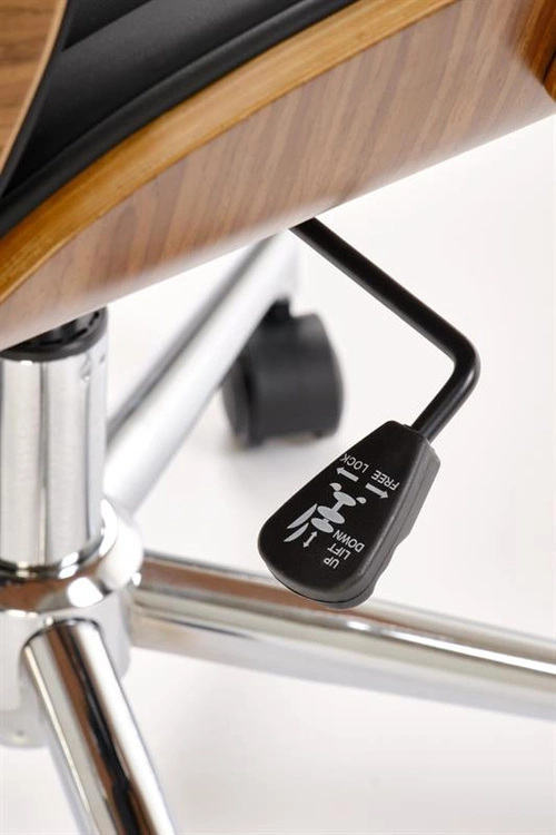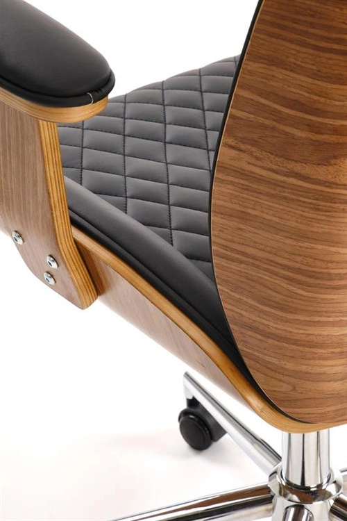 Fotel gabinetowy TIMBER orzechowe wykończenie z czarną tapicerką z ekoskóry