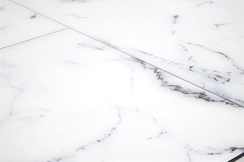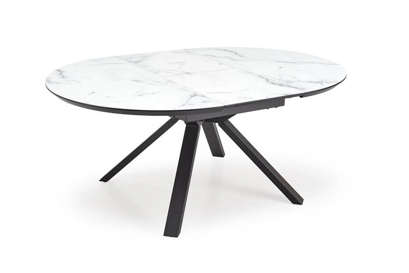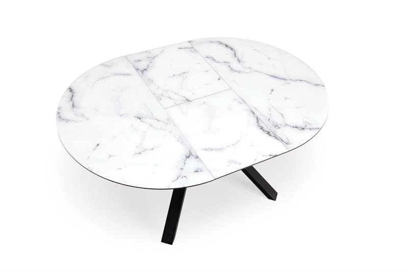 Stół rozkładany VERTIGO z blatem w wykończeniu białego marmuru i czarnymi nogami
