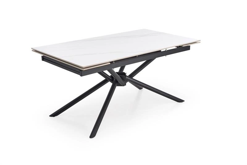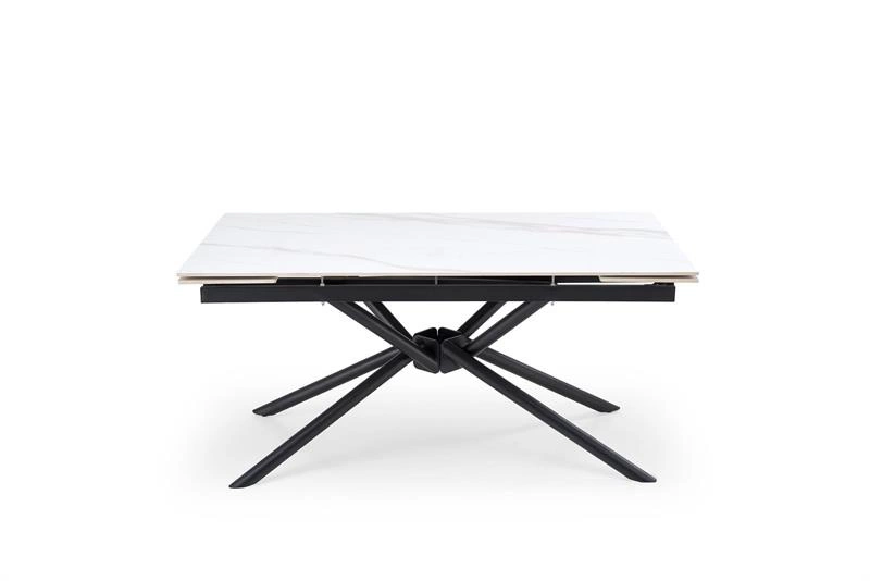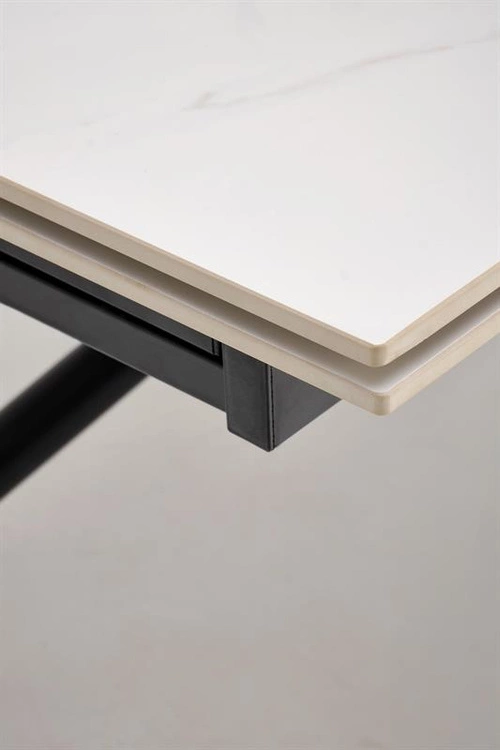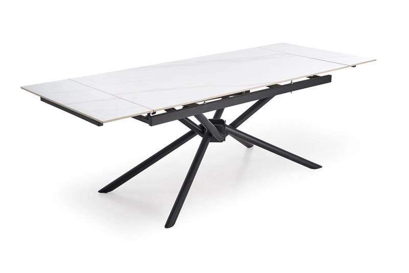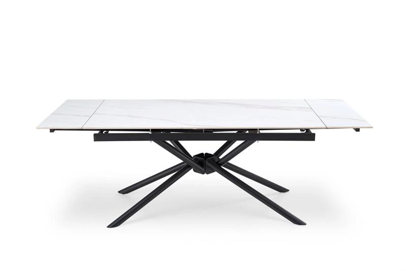 Stół rozkładany VITORINO w kolorze białego marmuru z czarnymi nogami