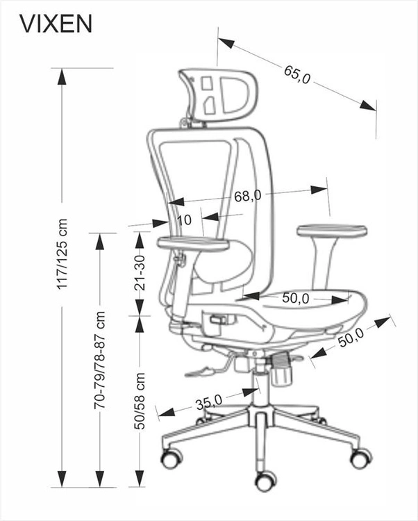 VIXEN to ergonomiczny fotel gabinetowy stworzony z myślą o długich godzinach pracy w biurze lub home office. Jego konstrukcja oparta na przewiewnej siatce zapewnia doskonałą cyrkulację powietrza, a szeroki zakres regulacji pozwala idealnie dopasować fotel do indywidualnych potrzeb użytkownika. Funkcja MULTIBLOCK umożliwia blokowanie oparcia w różnych pozycjach, a regulowany zagłówek, podłokietniki oraz punkt podparcia pleców wspierają prawidłową postawę ciała. Dodatkowo regulowane siedzisko pozwala ustawić optymalną wysokość i głębokość dla pełnego komfortu. Solidne wykonanie i nowoczesny wygląd sprawiają, że VIXEN jest doskonałym wyborem do każdego eleganckiego gabinetu.