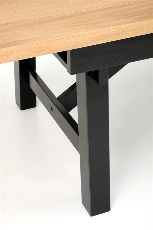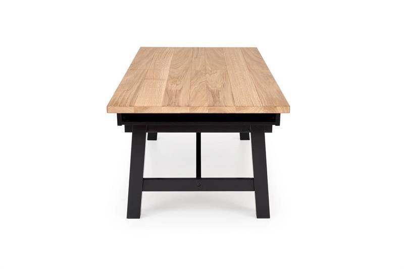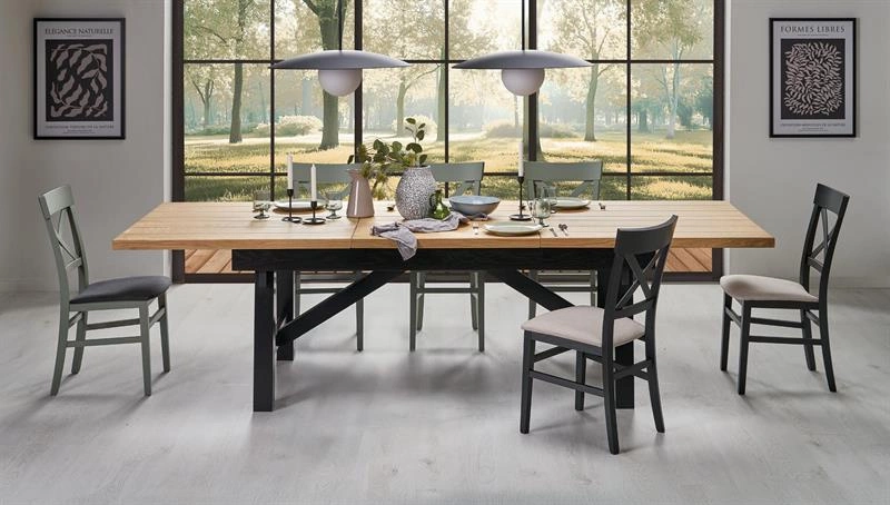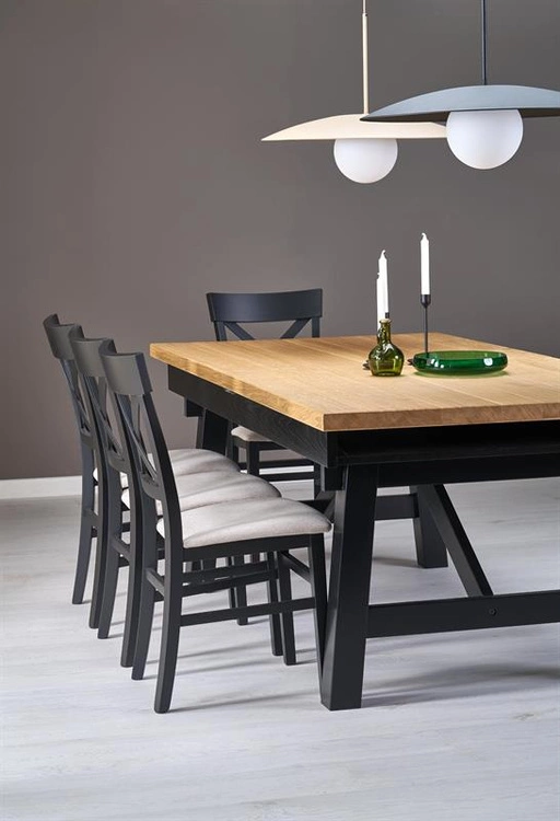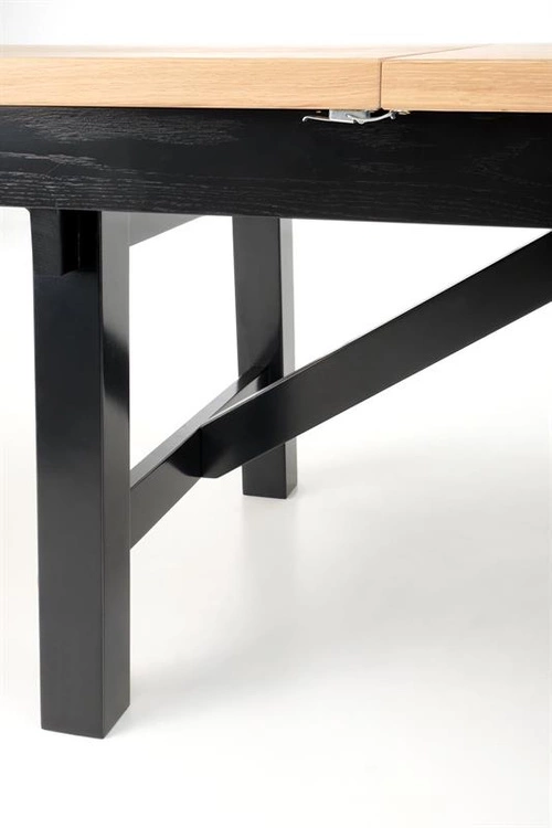 Stół rozkładany FIESTA łączy elegancję dębu naturalnego z kontrastem czarnych nóg