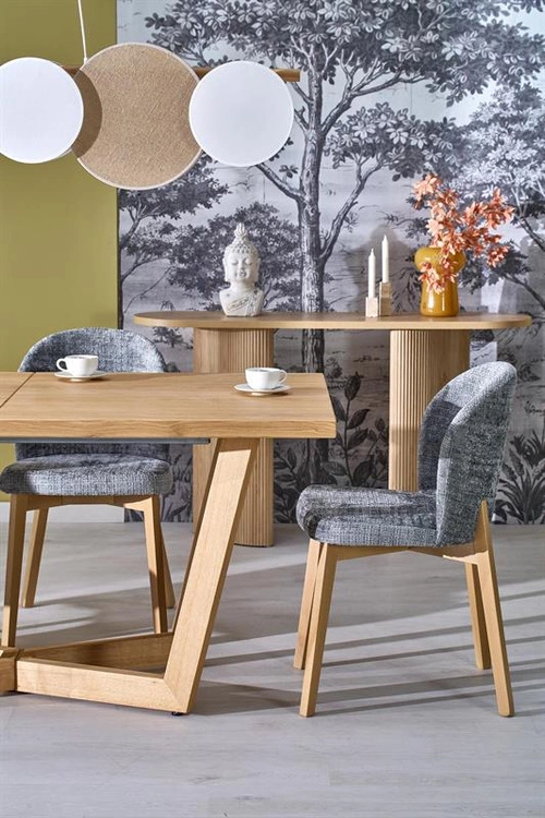 - Stół rozkładany MASSIVE 3 w całości utrzymany w dębowej stylistyce to solidny i elegancki mebel do jadalni. Naturalne drewno oraz fornirowany blat gwarantują trwałość, a funkcja rozkładania zapewnia wygodę przy większych spotkaniach.