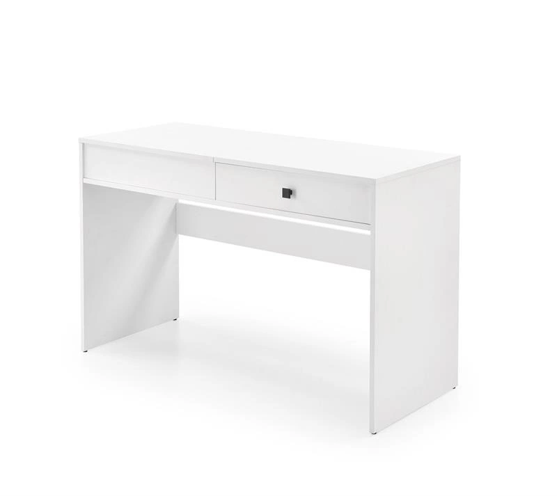 Toaletka MEGAN w białym, matowym wykończeniu to połączenie nowoczesnego designu z praktycznym zastosowaniem. Korpus wykonano z płyty meblowej laminowanej, co zapewnia trwałość i łatwość w utrzymaniu czystości, a blat pokryto szkłem, które wprowadza subtelny połysk i dodaje meblowi elegancji. Dzięki szerokości aż 120 cm toaletka oferuje dużą powierzchnię roboczą, idealną do przechowywania kosmetyków, akcesoriów czy biżuterii. Prosty, minimalistyczny design sprawia, że MEGAN doskonale wpisuje się w nowoczesne wnętrza – zarówno w sypialni, jak i w przestrzeni garderobianej.