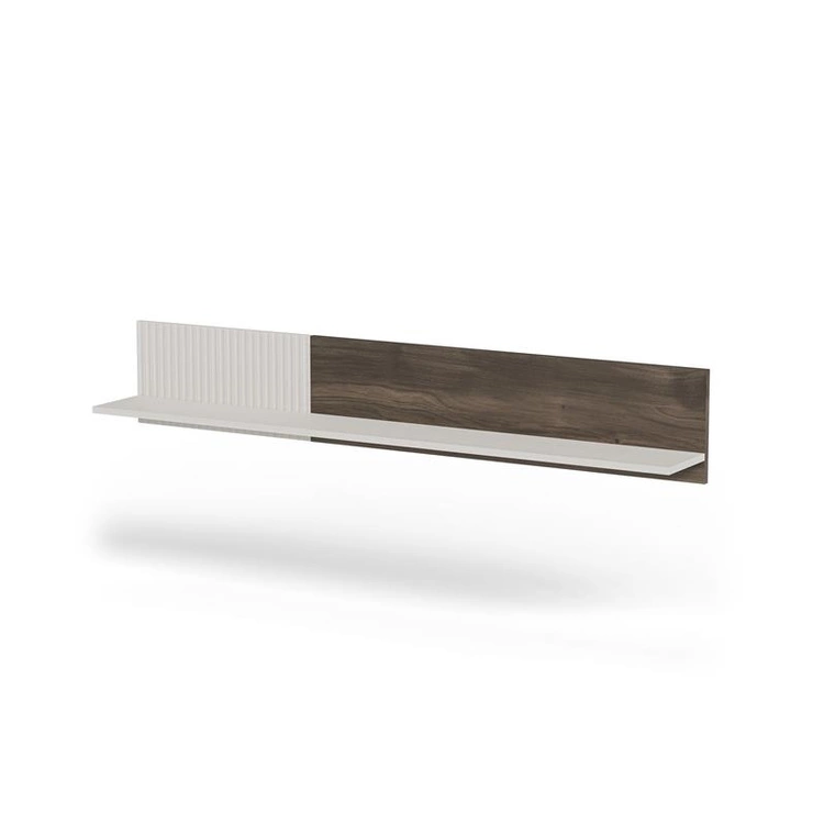 Półka RANDOM 2 P-1 to minimalistyczna, a zarazem efektowna propozycja do nowoczesnych wnętrz. Zestawienie kolorów – kaszmir, ciepły orzech i głęboka czerń – nadaje całości elegancki, a przy tym ponadczasowy wygląd. Wykonana z wysokiej jakości materiałów: płyty meblowej i MDF-u pokrytego okleiną, gwarantuje trwałość i estetyczne wykończenie. Dzięki długości 150 cm oferuje sporo miejsca na książki, dekoracje czy pamiątki, jednocześnie nie przytłaczając przestrzeni. RANDOM 2 P-1 świetnie prezentuje się solo lub w zestawie z innymi meblami z kolekcji – tworząc spójną i funkcjonalną aranżację salonu, jadalni czy biura.